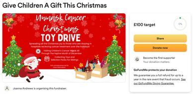 We've set up a GoFundMe for this toy drive to enable people who live further out, or want to donate but don't have a lot of money spare during the upcoming festive period!